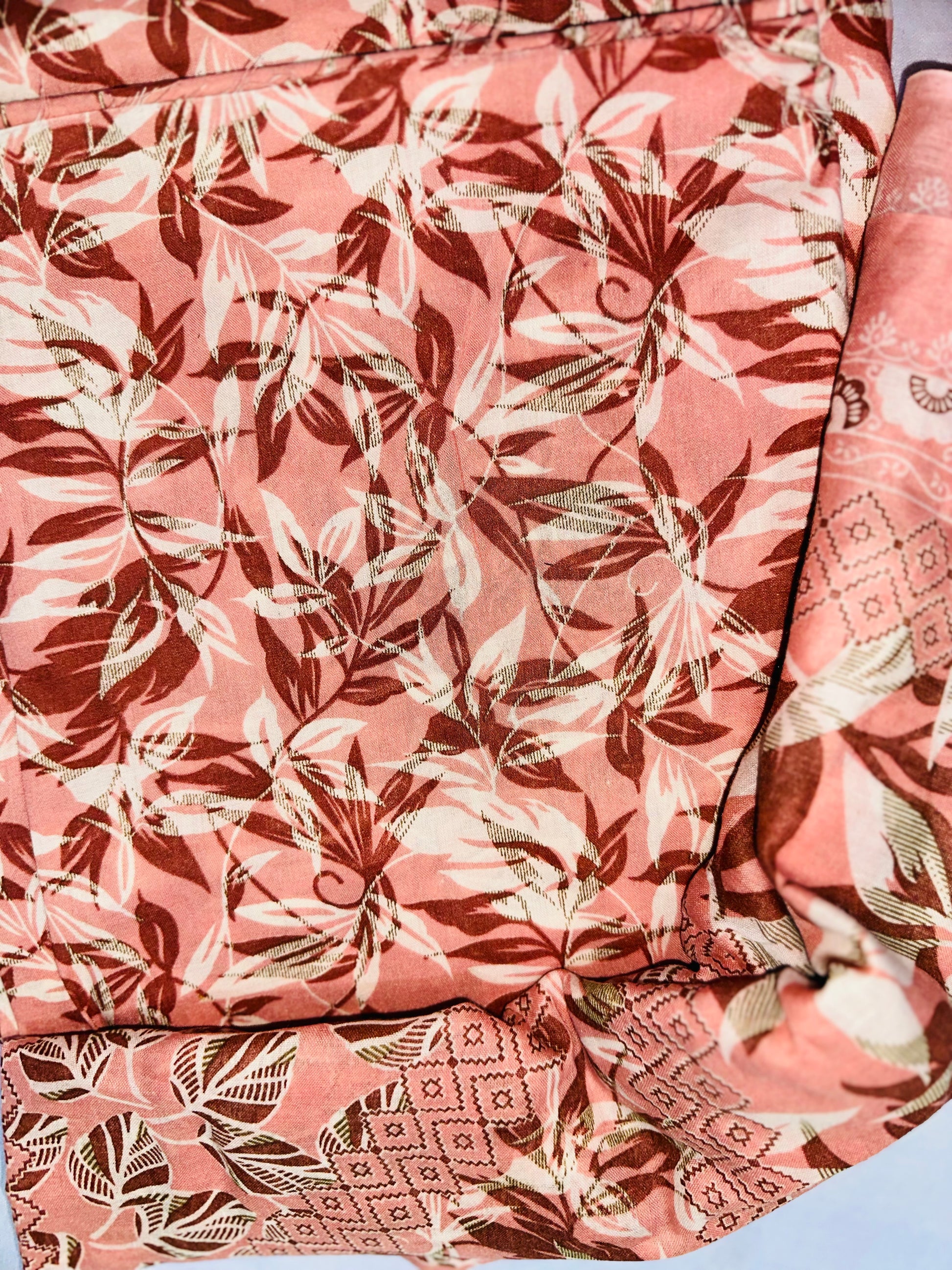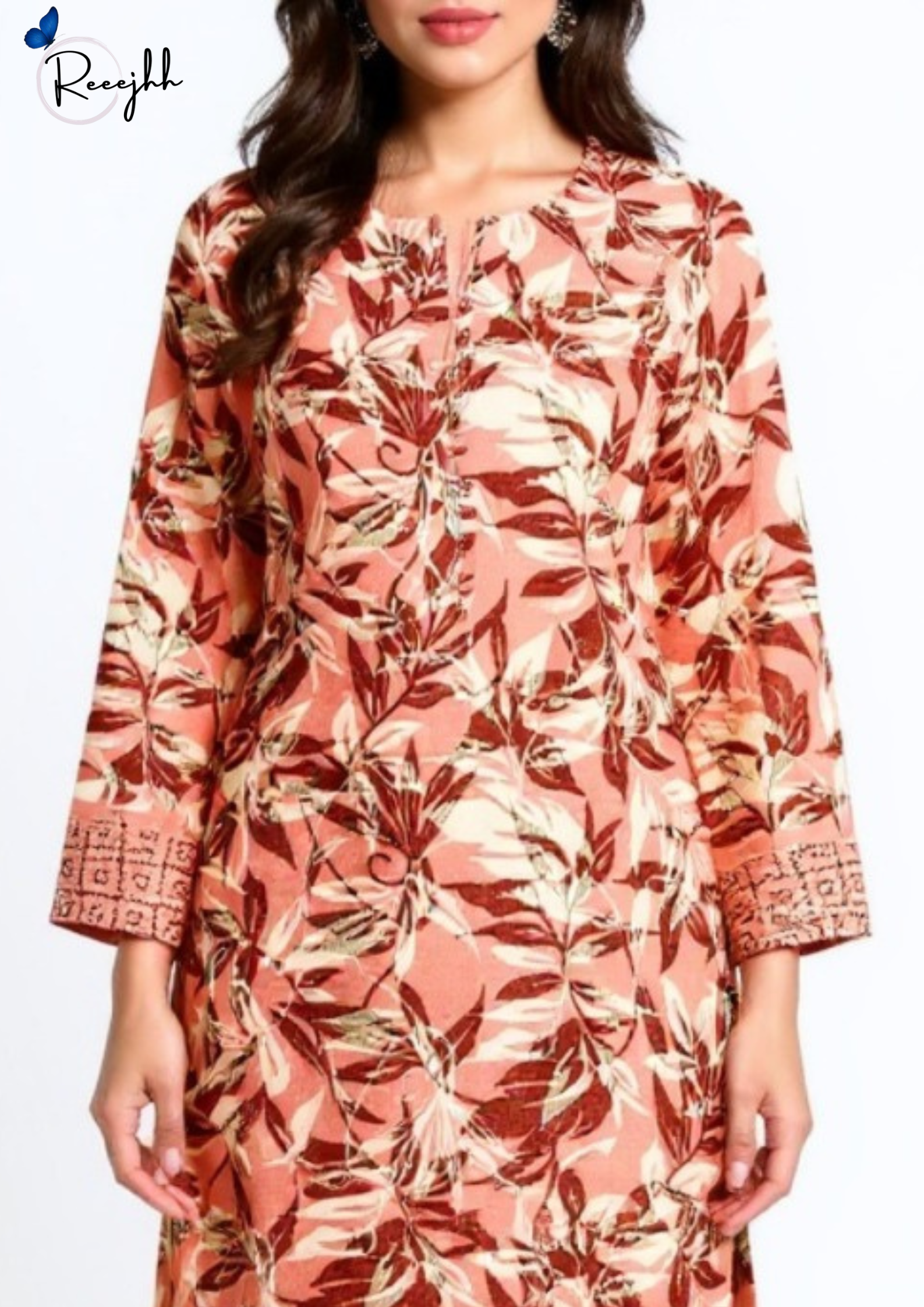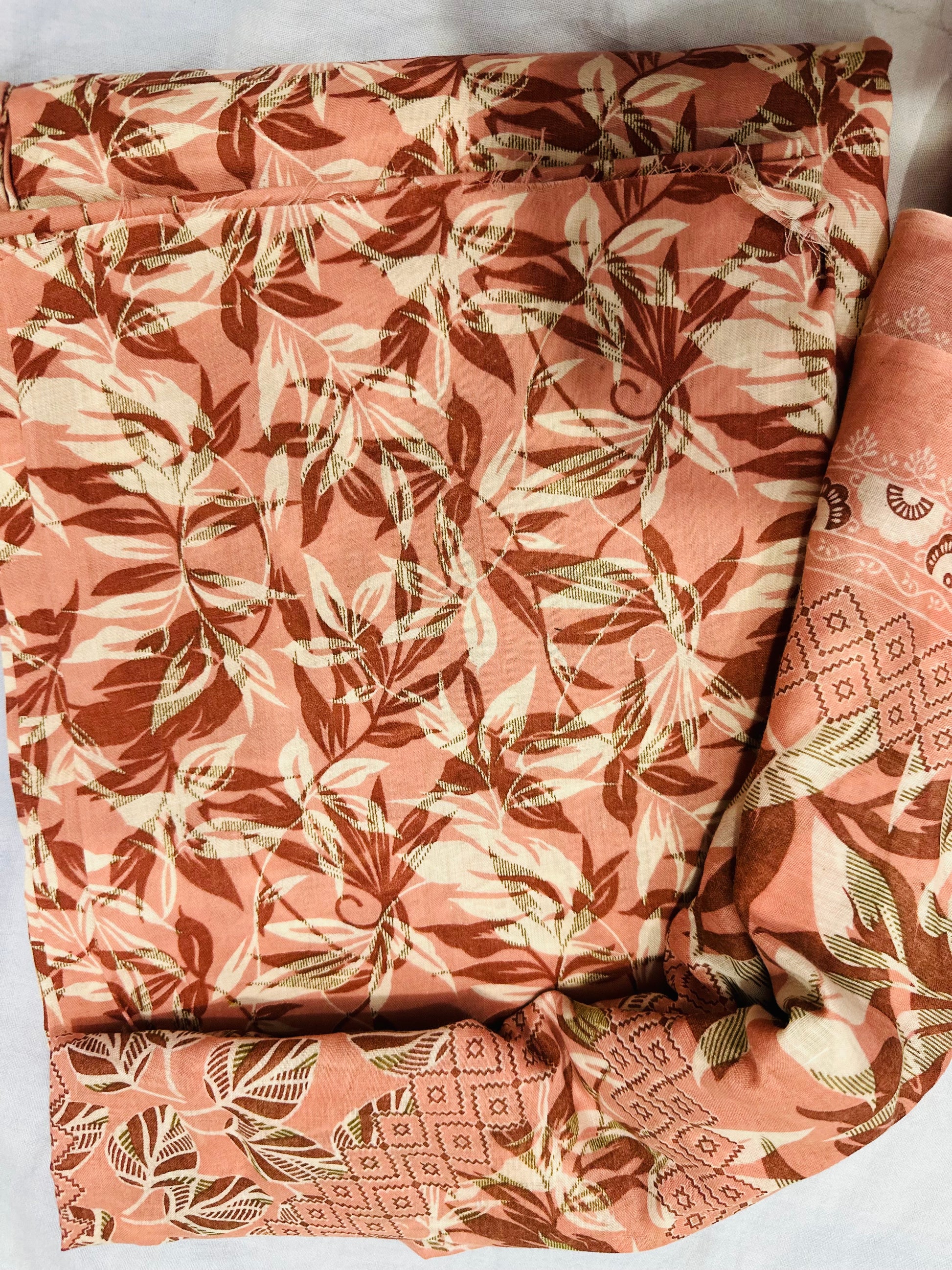 Peach & Maroon Leafy Printed Cotton Salwar Kameez with Dupatta Suit Set For ladies – Reeejhh